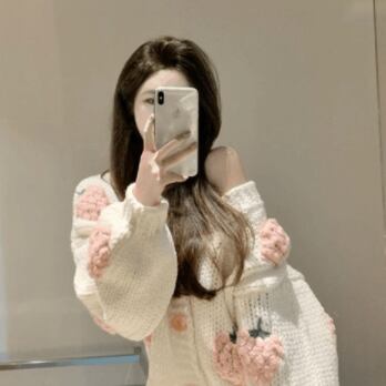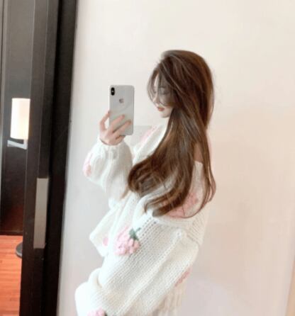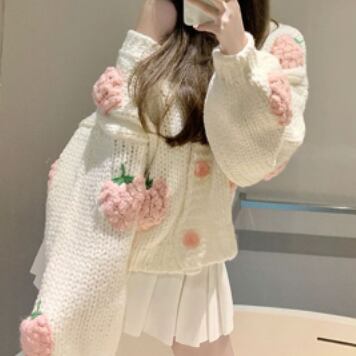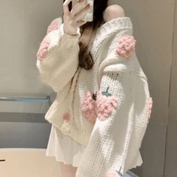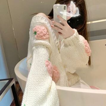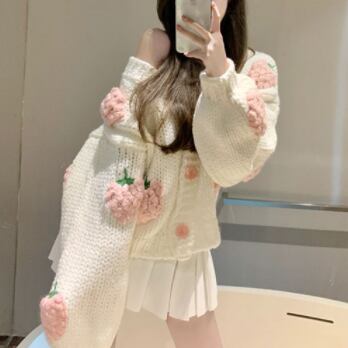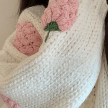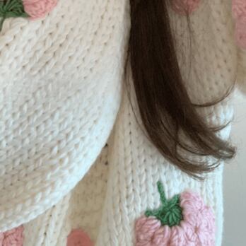 大きないちごの刺繍が目を引くニットカーディガン