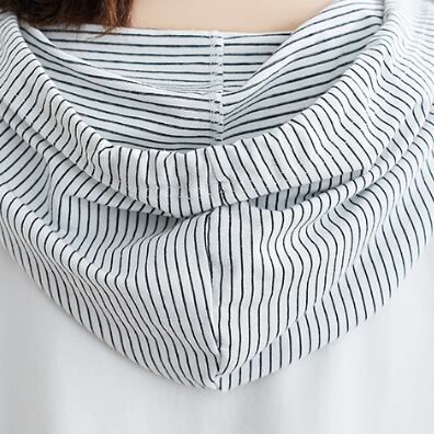 フードのストライプとのコンストラクトがおしゃれなパーカーです。