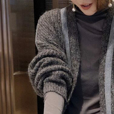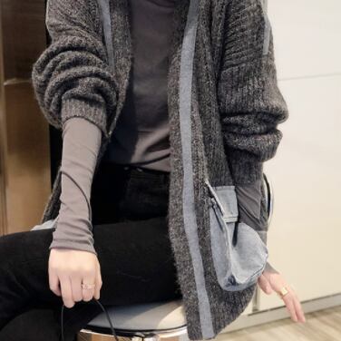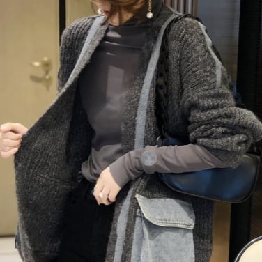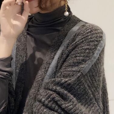 商品名が長いですが、その分たくさんの特徴を持ったアウターです。カーディガンとセーターがドッキングしたようなデザインで、切り替えがアクセントになっています。前開きなので羽織りやすく、厚手のニット素材で暖かいのも嬉しいポイント。コーディネートによって色々な着こなしが楽しめるシンプルデザインになっています。