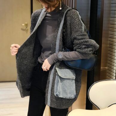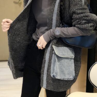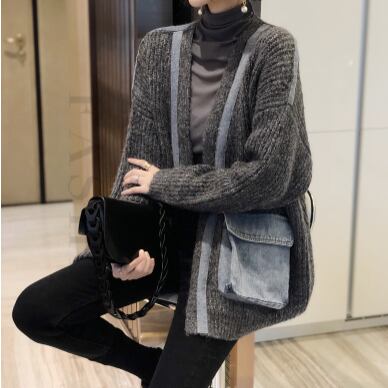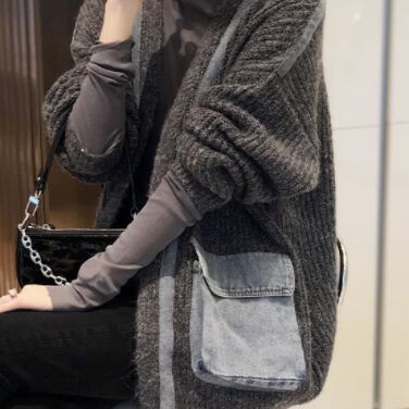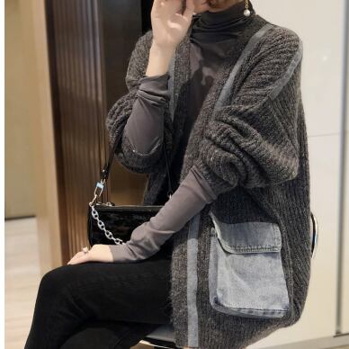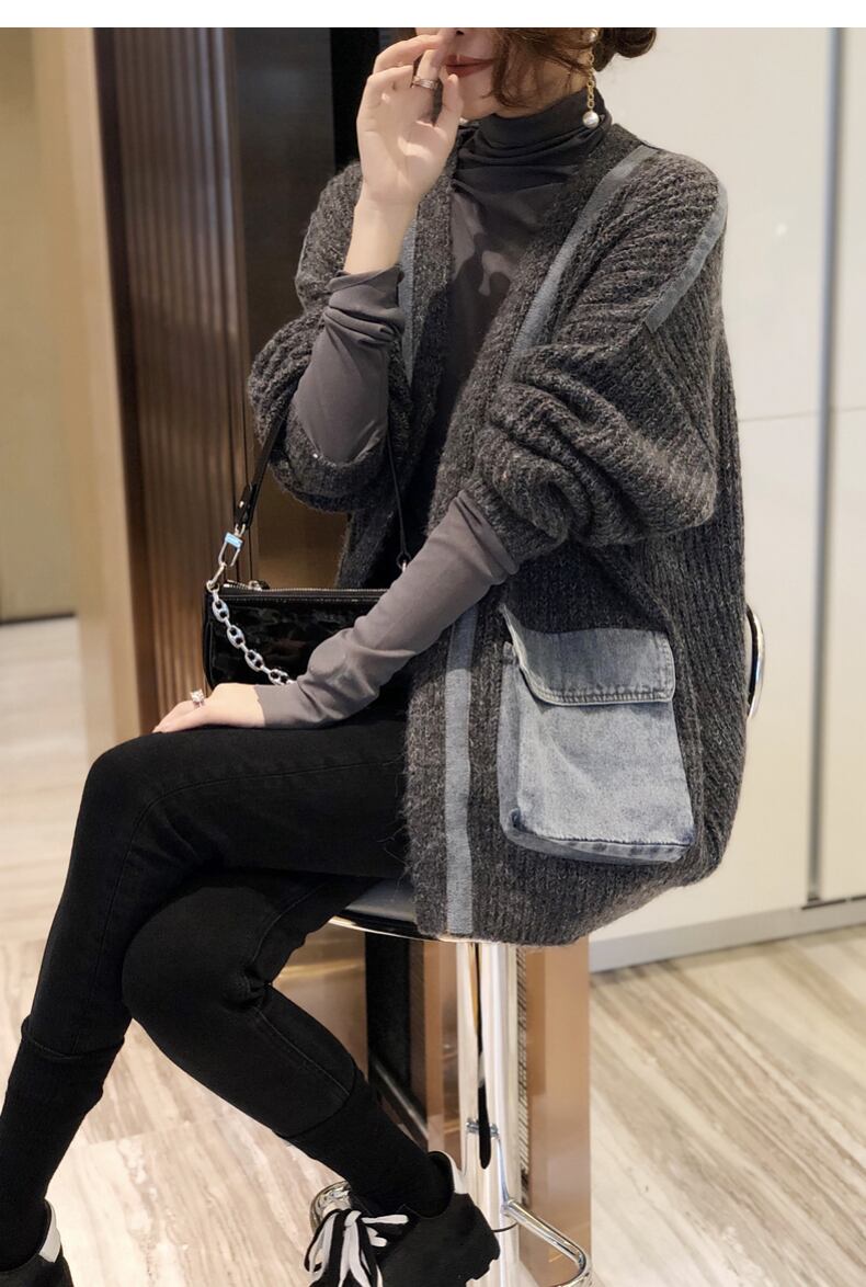 アウター セーター カーディガン 上着 長袖 切り替えデザイン ドッキング 前開き デニム ブルーデニム ニット 厚手 かわいい 大人可愛い シンプル カジュアル 大人 おしゃれ お洒落 かっこいい 大人可愛い 大人女子 こなれ感 ラフ メンズライク ボーイッシュ キュート ガーリー ルーズ 個性的 モード系 主役級 存在感 無地 春 秋 冬 10代 20代 30代 40代 レディース 女性用 ママ 女の子 学生 デート お出かけ 女子会 お泊まり 休日 着回し 普段使い 韓国 韓国系 ヴィンテージ 海外