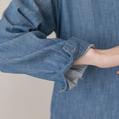 色はライトブルーとブルーの2色から選べるので、季節に合わせてコーディネートを楽しめます。無地なので、アクセサリーやバッグでアレンジすれば、着回し力も抜群です。