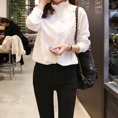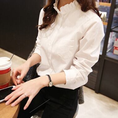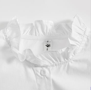 スタンドカラーシャツ トップス シャツ ブラウス クラシック ホワイト 白 レギュラー丈 袖あり 長袖 スタンドカラー ストレート シングルブレスト ボタン フリル 綿 コットン 大人女子 大人 上品 おしゃれ きれいめ シンプル デイリーウェア レトロ レトロ風 こなれ感 個性的 デザイン 主役級 存在感 無地 春 スプリング 秋 オータム 20代 10代 30代 40代 レディース 女性用 オフィス ビジネス OL 通勤 学生 学校 通学 S M L XL 2XL