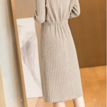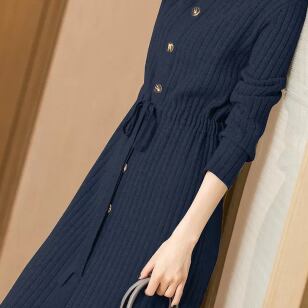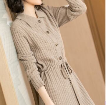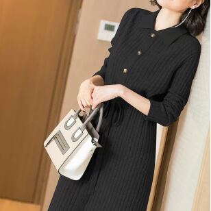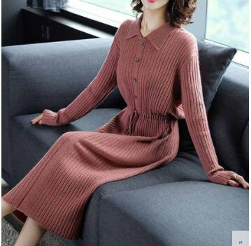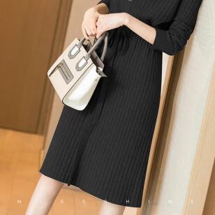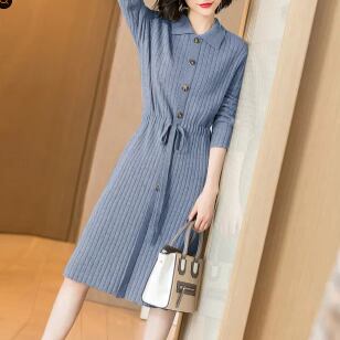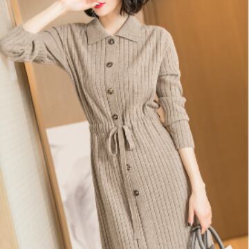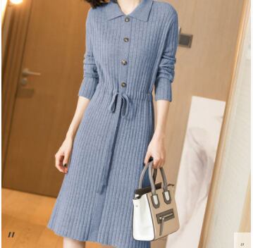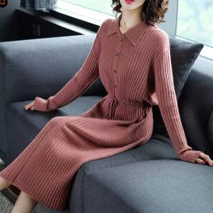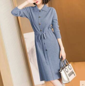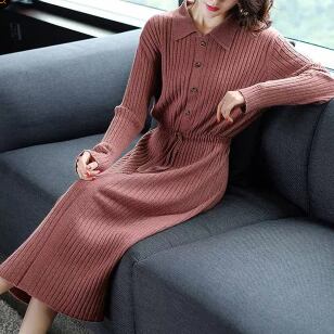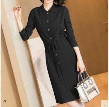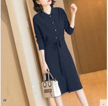 ニットワンピース トップス ニット シンプル ブラック 黒 ブルー 青 ネイビー 紺 カーキ レッド 赤 ミドル丈 袖あり 長袖 襟付き スリム 細身 タイト ボタン ウエスト紐 ポリエステル アクリル 大人女子 大人 上品 おしゃれ きれいめ シンプル デイリーウェア レトロ レトロ風 こなれ感 主役級 存在感 無地 秋 オータム 冬 ウインター 20代 30代 40代 レディース 女性用 オフィス ビジネス OL 通勤 着回し 普段使い ワンサイズ くすみカラー