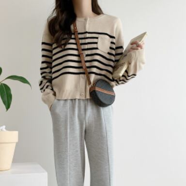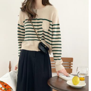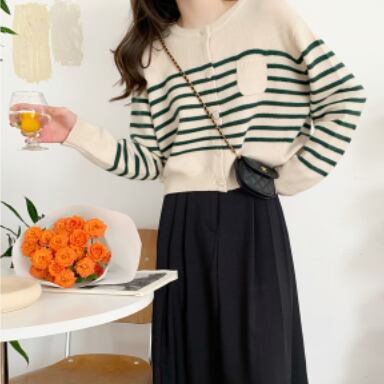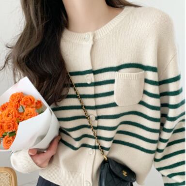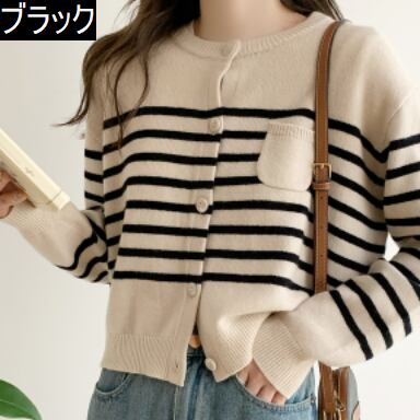 ボーダーカーディガン トップス カーディガン 長袖 ラウンドネック ニット かわいい 大人可愛い シンプル カジュアル おしゃれ お洒落 大人可愛い 大人女子 キュート ガーリー エレガント 主役級 存在感 ボーダー 春 秋 10代 20代 30代 40代 レディース 女性用 ママ 女の子 学生 デート お出かけ お泊まり 休日 着回し 韓国 韓国系 ファッション コーデ スタイル モテ 新作 定番 送料無料 トレンド 流行 インスタ映え インポート 海外 人気 大人カジュアル ボタン 前開き ポケット