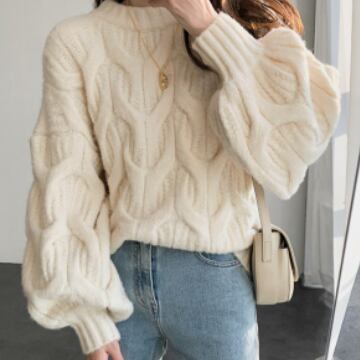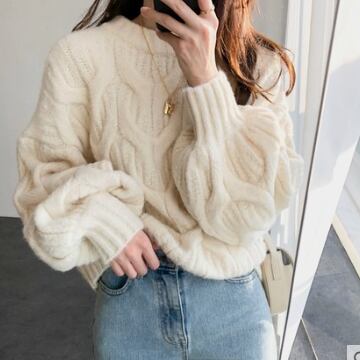 大人可愛いコーディネートに欠かせない、ケーブルニットセーターの登場です!トップスとしても、インナーとしても使える長袖のセーターです。厚手で暖かいので、秋冬のコーディネートにはもってこい。ボリューム袖とラウンドネックのデザインで、女性らしいフォルムに仕上がっています。ガーリーなコーディネートにはもちろん、カジュアルなスタイルにも合わせやすく、あらゆるシーンで活躍します。幅広い年代に支持される、主役級の存在感を持った一枚です。韓国系ファッションの流行とも合わせやすい、おしゃれなデザインになっています。毎日のファッションに取り入れて、お出かけもおうち時間も、極上の心地良さを実感してください。