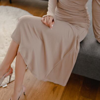 タイトなシルエットがエレガントでお洒落なミモレ丈ワンピースです。