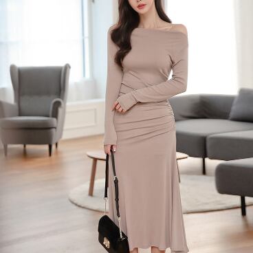 ワンピース ミモレ ミモレ丈 ロング 長袖 ラウンドネック タイト 細身 スマート かわいい 大人可愛い きれいめ 大人 上品 おしゃれ お洒落 レトロ 大人可愛い 大人女子 こなれ感 キュート ガーリー 個性的 セクシー エレガント 主役級 存在感 フォーマル 無地 秋 冬 入学式 入園式 卒業式 卒園式 結婚式 二次会 披露宴 10代 20代 30代 40代 50代 レディース 女性用 ママ 女の子 デート お出かけ 女子会 お泊まり 休日 パーティー イベント 韓国 韓国系 オルチャン インポート