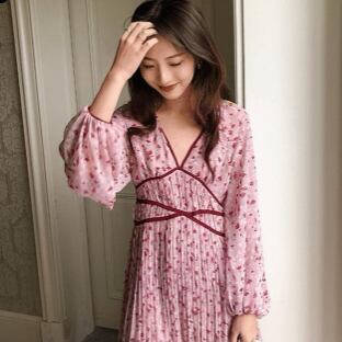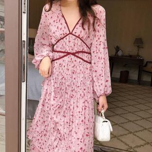 花柄ワンピースのレッドが、今年の春夏のトレンドアイテムです。長めの丈でスリムなデザインが、スタイルアップ効果抜群。上品で大人っぽい印象に仕上がります。