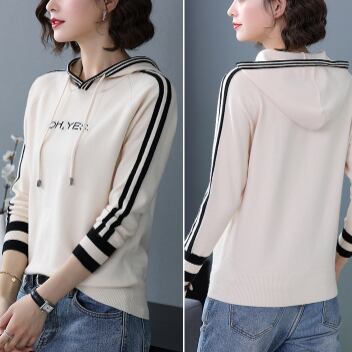 フード付きセーター トップス ニット スポーティ ブルー 青 ベージュ レッド 赤 レギュラー丈 袖あり 長袖 フード スリム 細身 タイト 大人女子 大人 上品 おしゃれ デイリーウェア レトロ レトロ風 こなれ感 個性的 デザイン 主役級 存在感 無地 柄 ライン 春 スプリング 秋 オータム 20代 30代 レディース 女性用 運動 アウトドア 動きやすい 着回し 普段使い ファッション コーデ M L XL 大きいサイズ 2XL 3XL カラバリ