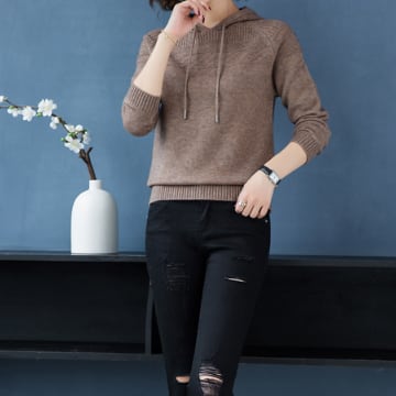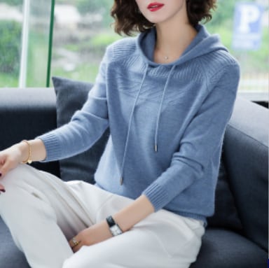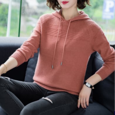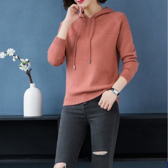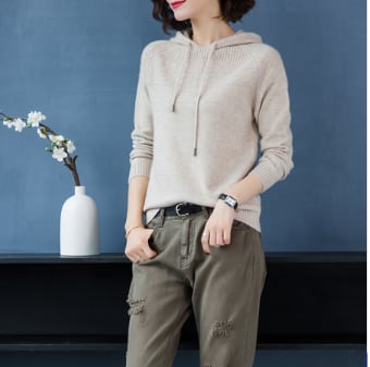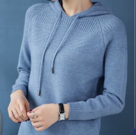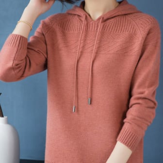 春秋に活躍するフード付きニット