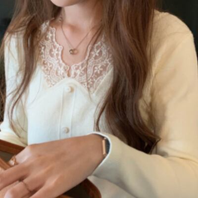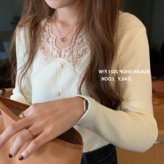 レースがお上品な長袖ニットです。