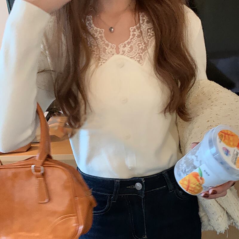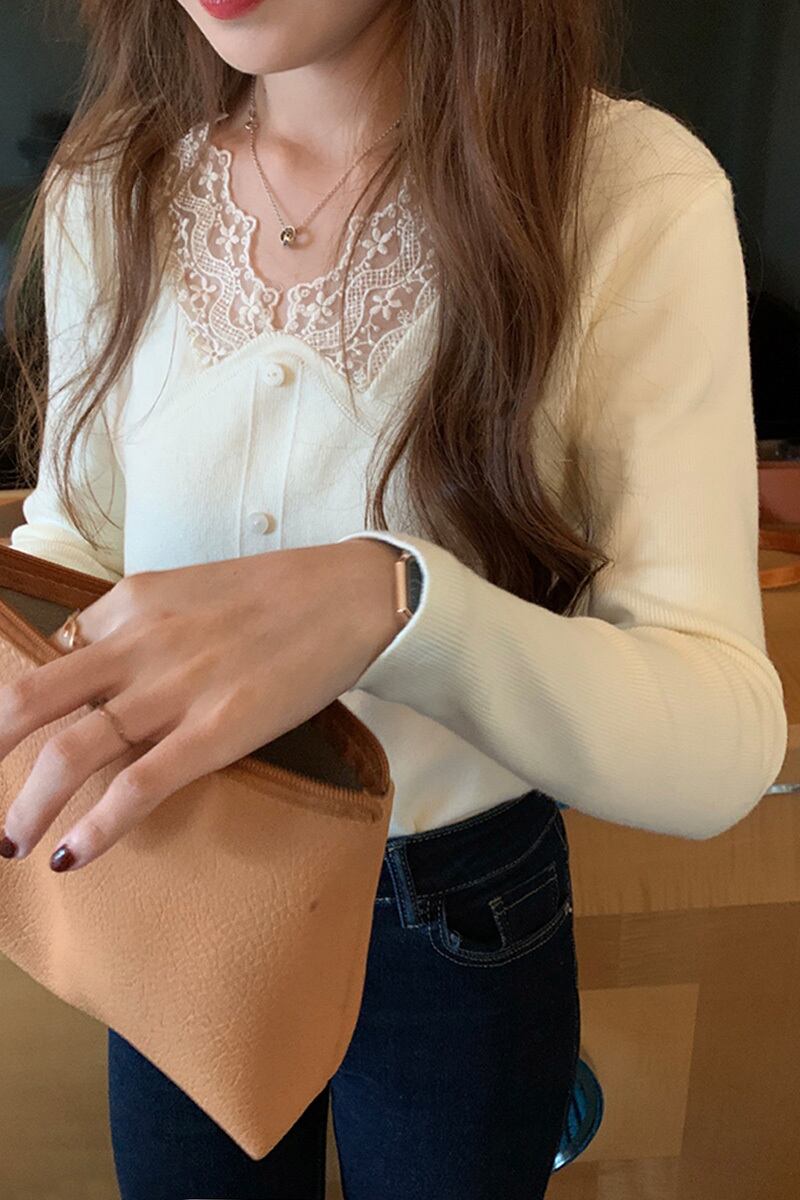 フェミニン長袖ニット トップス ニット ショート 長袖 Vネック ストレート レース ニット かわいい 大人可愛い きれいめ シンプル 大人 上品 おしゃれ レトロ 大人可愛い 大人女子 ラブリー キュート ガーリー 無地 春 秋 冬 クリスマス バレンタイン 10代 20代 30代 40代 50代 レディース ママ オフィス ビジネス OL 通勤 学生 通学 デート お出かけ 女子会 ガーデン レストラン 着回し ファッション コーデ スタイル 楽ちん モテ プレゼント S M L サイズ 白