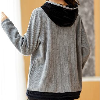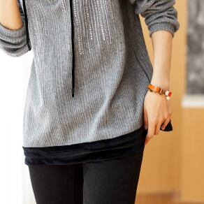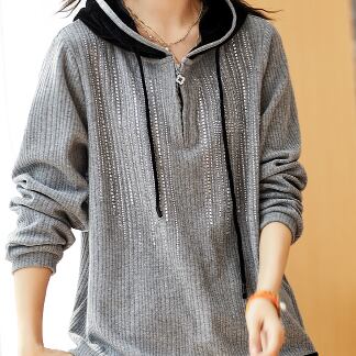 大人女子にぴったりの、おしゃれなフード付きニットトップスが入荷しました!ゆったりとしたストレートなシルエットに、レトロ風のビーズ装飾がキュートな存在感を演出してくれます。袖ありで長い袖で、春と秋の季節にも活躍するレギュラー丈の長袖タイプ。グレーの配色が上品で、どんなボトムスにも合わせやすく着回しの効く一枚です。