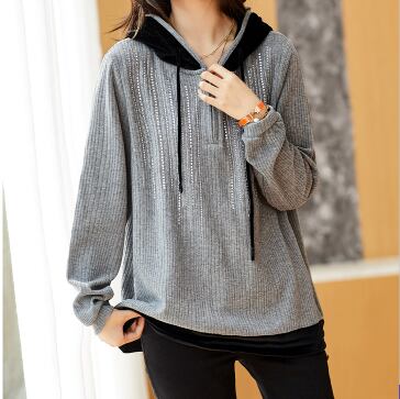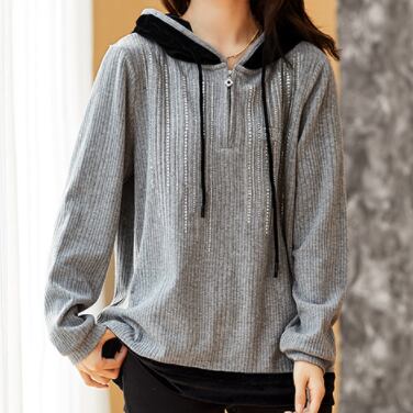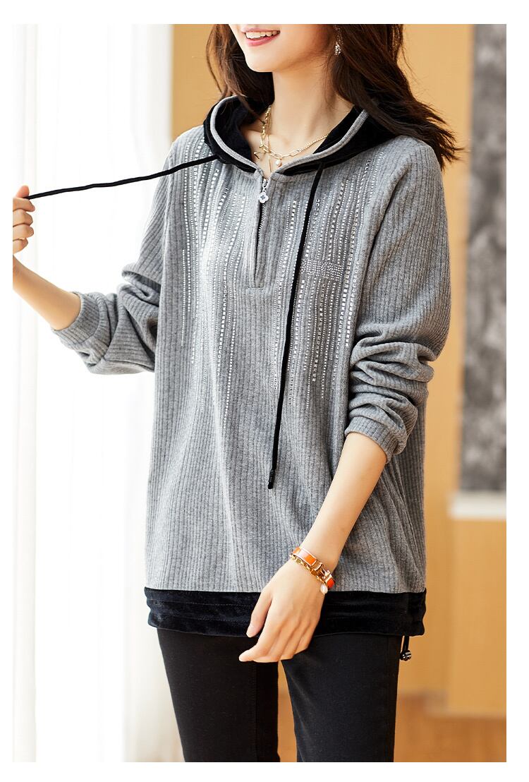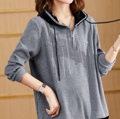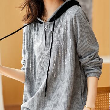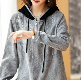 フード付きニット トップス セーター カジュアル グレー 灰色 レギュラー丈 袖あり 長袖 フード ストレート ビーズ ポリエステル 大人女子 大人 上品 おしゃれ きれいめ シンプル デイリーウェア レトロ レトロ風 こなれ感 キュート かわいい 女子 個性的 デザイン 主役級 存在感 柄 配色 ライン 春 スプリング 秋 オータム 20代 30代 レディース 女性用 運動 アウトドア 動きやすい 着回し 普段使い M L XL 大きいサイズ 2XL 3XL 4XL