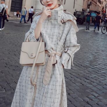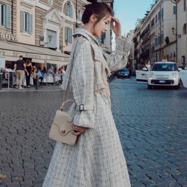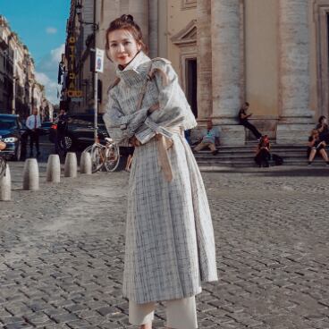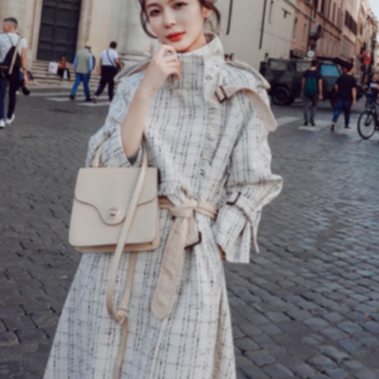 トレンド感とこだわりのディテールが光るチェック柄ロングコート。Aラインのシルエットで、女性らしい綺麗なラインを作り上げ、バルーン袖とウエストリボンでこなれ感と可愛らしさをプラスしています。コーティング加工が施された綿素材で作られ、ライトアウターとしてはもちろん、中に厚手のニットを着込めば寒い日でも活躍する優秀アイテムです。