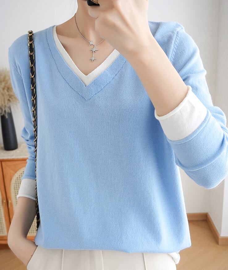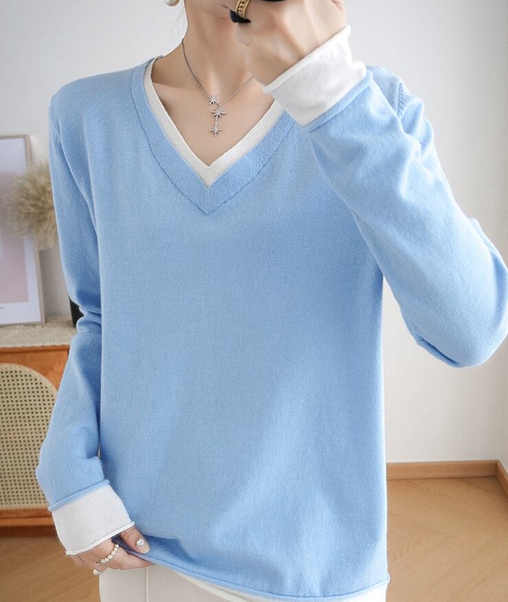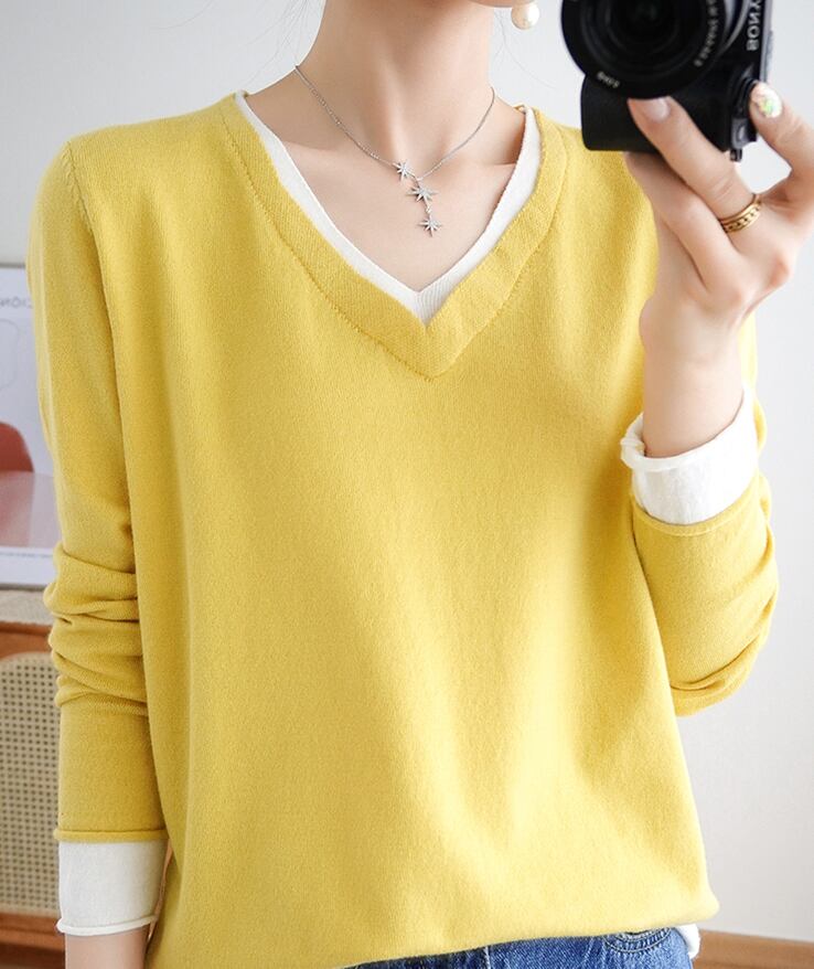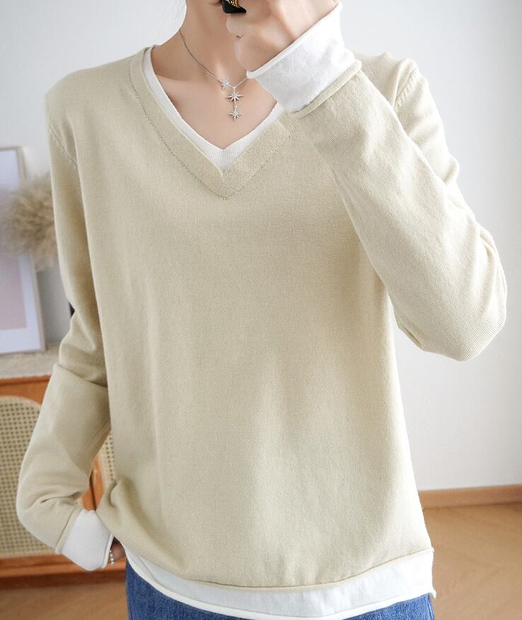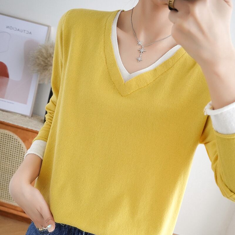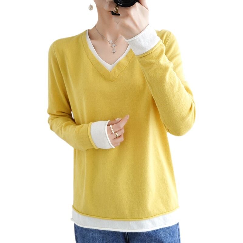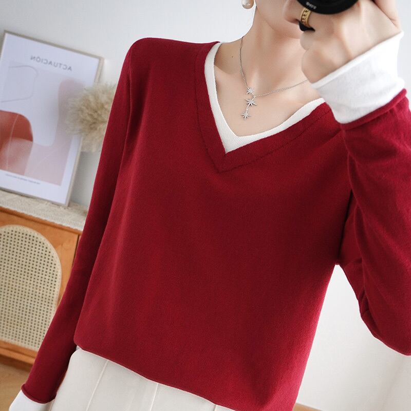 重ね着風ニット トップス ニットソー セーター 袖あり 長袖 Vネック ドッキング ドッキング かわいい 大人可愛い きれいめ シンプル カジュアル 大人 上品 おしゃれ お洒落 レトロ 大人可愛い 大人女子 こなれ感 ラブリー キュート ガーリー 個性的 主役級 存在感 抜け感 無地 春 秋 10代 20代 30代 レディース 学生 通学 デート お出かけ 公園デビュー 女子会 休日 着回し 普段使い 重ね着 韓国系 オルチャン サイズ S M L XL 2XL 3XL 色展開 黒 ブラック レッド