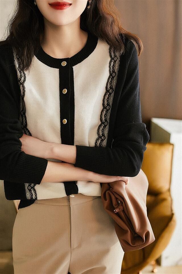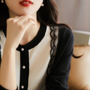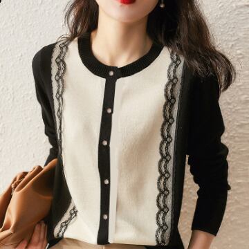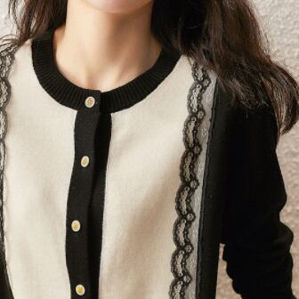 大人かわいいバイカラーレースカーディガンが登場しました。上品さと可愛らしさがミックスされたデザインは、オンオフ問わず活躍すること間違いなし。ラウンドネックと前開きのデザインはコーディネートしやすく、レースの切り替えがアクセントになっています。長袖で着回し力もバツグン。レトロな印象が強いですが、それを取り入れるこなれ感は大人にも人気です。10代から30代の幅広い年代で着ていただけるよう、無地でシンプルなデザインにしました。春や秋には一枚で着るのはもちろん、重ね着してトレンド感も演出してください。