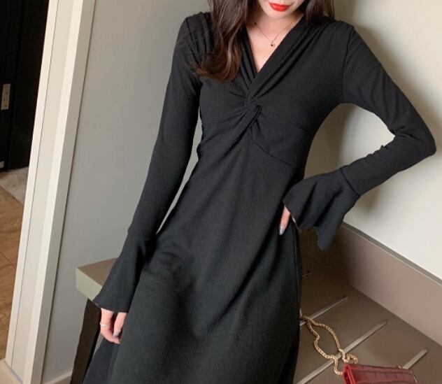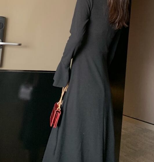 Vネックニットロングワンピース ワンピース ニット ロング丈 長袖 ボリューム袖 Vネック フレア Aライン 伸縮性 ニット かわいい 大人可愛い きれいめ シンプル 大人 上品 レトロ 大人可愛い 大人女子 個性的 エレガント 存在感 無地 秋 冬 誕生日 10代 20代 30代 40代 50代 レディース オフィス 通勤 学生 通学 デート お出かけ 女子会 休日 イベント レストラン 着回し ファッション コーデ スタイル デート 暖かい モテ S M L XL 黒 ブラック 赤 レッド