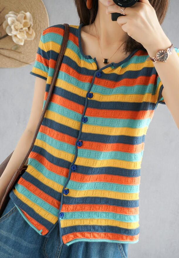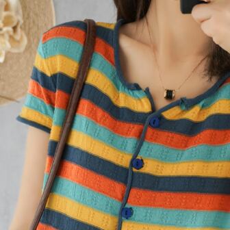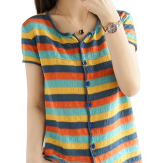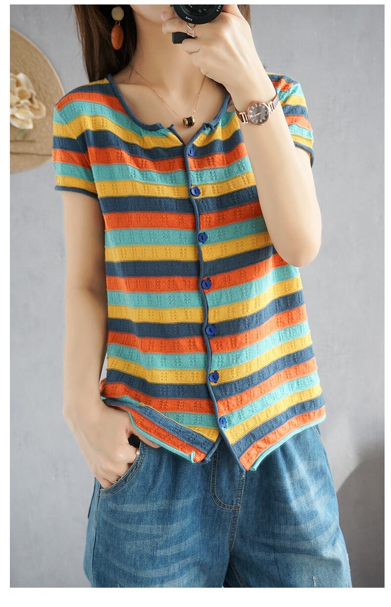 ボーダーカーディガン トップス カーディガン 袖あり 半袖 ラウンドネック 前開き 綿 かわいい 大人可愛い きれいめ シンプル カジュアル 大人 上品 おしゃれ お洒落 レトロ 大人可愛い 大人女子 こなれ感 ラブリー キュート ガーリー 個性的 主役級 存在感 抜け感 柄 ボーダー 春 夏 10代 20代 30代 レディース 学生 通学 デート お出かけ 公園デビュー 女子会 休日 着回し 普段使い 重ね着 韓国系 オルチャン サイズ S M L XL 2XL