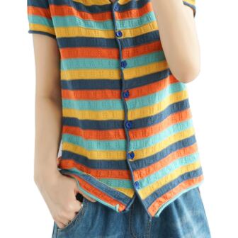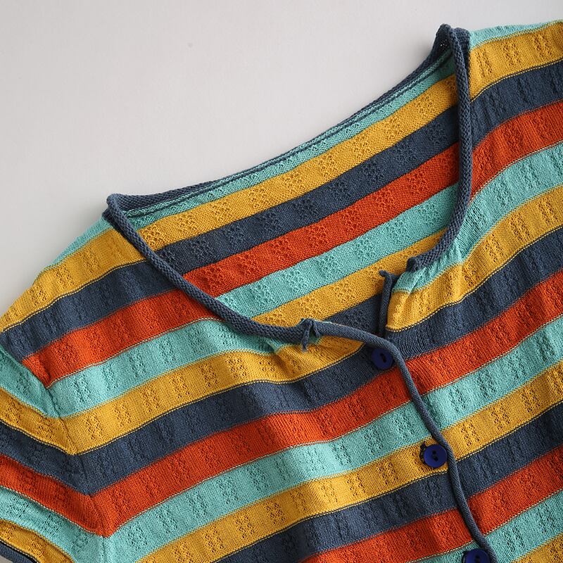 カラフルなボーダーがオトナ可愛い半袖カーディガン♪