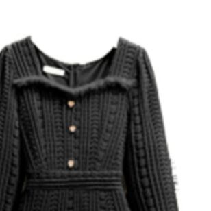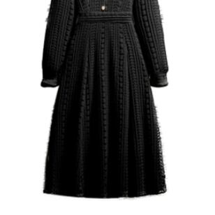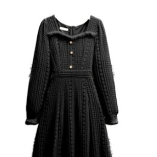 このワンピースは、長袖で襟付きのファーがポイントの超かわいいデザインです。大人可愛い印象ながら、きれいめでエレガントな雰囲気も漂います。レトロで個性的なデザインは、主役級の存在感があるので、パーティーやイベントでも必ず目立ちます。