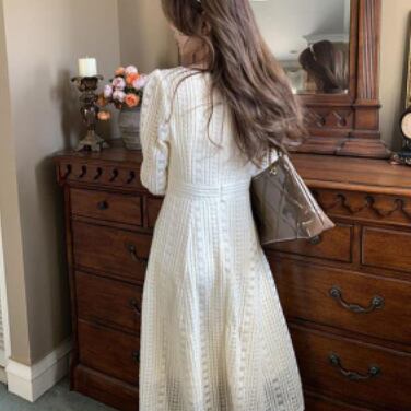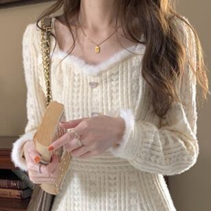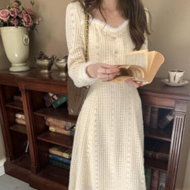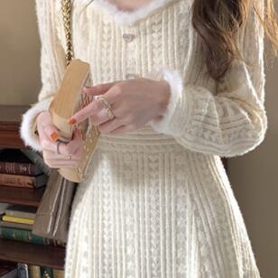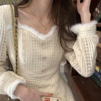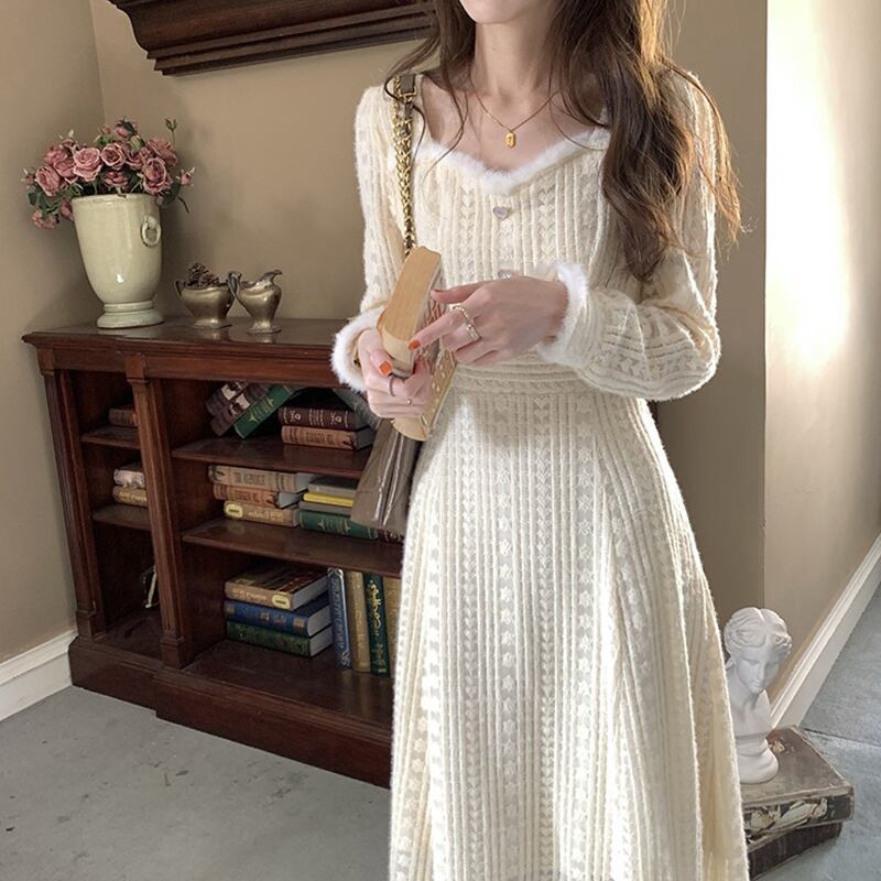 ワンピース 長袖 襟付き ファー フェイクファー かわいい 大人可愛い きれいめ おしゃれ お洒落 レトロ 大人可愛い 大人女子 キュート ガーリー 個性的 エレガント 主役級 存在感 無地 春 秋 冬 10代 20代 30代 レディース 女性用 女の子 学生 デート お出かけ 女子会 お泊まり 休日 パーティー イベント 着回し 韓国 韓国系 オルチャン ファッション コーデ スタイル モテ 新作 定番 送料無料 トレンド 流行 インスタ映え インポート 人気 ボタン ミモレ丈 ミモレ 透け感 モテ