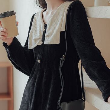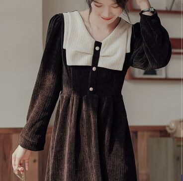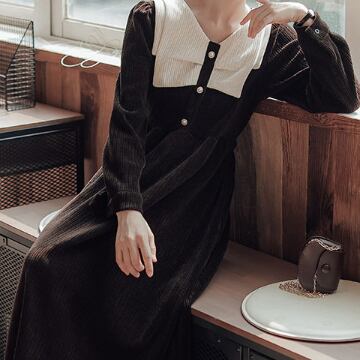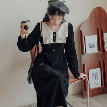 ワンピース 長袖 襟付き コーデュロイ かわいい 大人可愛い きれいめ おしゃれ お洒落 レトロ 大人可愛い 大人女子 キュート ガーリー 個性的 エレガント 主役級 存在感 無地 春 秋 冬 10代 20代 30代 レディース 女性用 女の子 学生 デート お出かけ 女子会 お泊まり 休日 パーティー イベント 着回し 韓国 韓国系 オルチャン ファッション コーデ スタイル モテ 新作 定番 送料無料 トレンド 流行 インスタ映え インポート 海外 人気 大人カジュアル モテ デートコーデ バイカラー