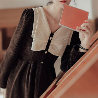 このワンピースは大人可愛さを漂わせる襟付き長袖デザインが特徴。コーデュロイの素材感がレトロな雰囲気を醸し出し、個性的な存在感を放ちます。大人女子にぴったりなキュートで上品な雰囲気は、おしゃれな女子の主役級アイテムとしておすすめです。