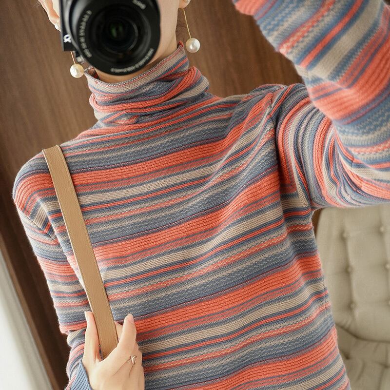 マルチボーダーハイネックニット トップス ニットソー セーター 袖あり 長袖 ハイネック かわいい 大人可愛い きれいめ シンプル カジュアル 大人 上品 おしゃれ お洒落 レトロ 大人可愛い 大人女子 こなれ感 ラブリー キュート ガーリー 個性的 主役級 存在感 抜け感 柄 ボーダー 春 秋 冬 10代 20代 30代 レディース 学生 通学 デート お出かけ 公園デビュー 女子会 休日 着回し 普段使い 重ね着 韓国系 オルチャン サイズ S M L XL 2XL 色展開 赤 レッド 緑 グリーン