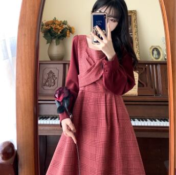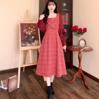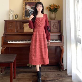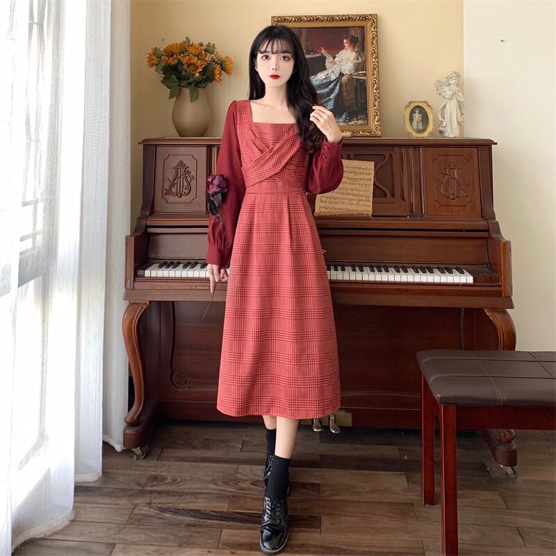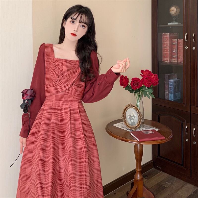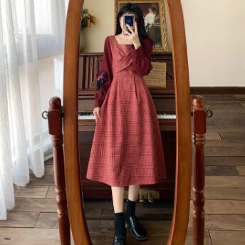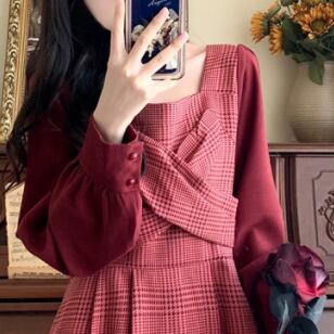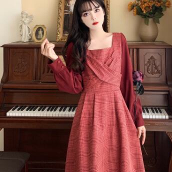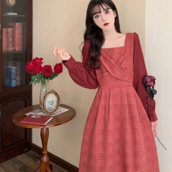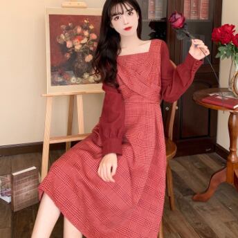 ワンピース 長袖 Vネック スクエアネック ドッキング 切り替えデザイン バイカラー かわいい 大人可愛い きれいめ おしゃれ お洒落 レトロ 大人可愛い 大人女子 キュート ガーリー 個性的 エレガント 主役級 存在感 柄 チェック柄 春 秋 結婚式 二次会 披露宴 10代 20代 30代 レディース 女性用 女の子 学生 デート お出かけ 女子会 お泊まり 休日 パーティー イベント 着回し 普段使い 重ね着 韓国 韓国系 オルチャン ファッション コーデ スタイル モテ 新作 定番 送料無料 海外