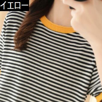 パイピングボーダーTシャツ トップス Tシャツ 袖あり 半袖 ラウンドネック 綿 かわいい 大人可愛い きれいめ シンプル カジュアル 大人 上品 おしゃれ お洒落 レトロ 大人可愛い 大人女子 こなれ感 ラブリー キュート ガーリー 個性的 主役級 存在感 抜け感 柄 ボーダー 春 夏 10代 20代 30代 レディース 学生 通学 デート お出かけ 公園デビュー 女子会 休日 着回し 普段使い 重ね着 韓国系 オルチャン サイズ S M L XL 2XL 3XL 色展開 赤 レッド 青 ブルー