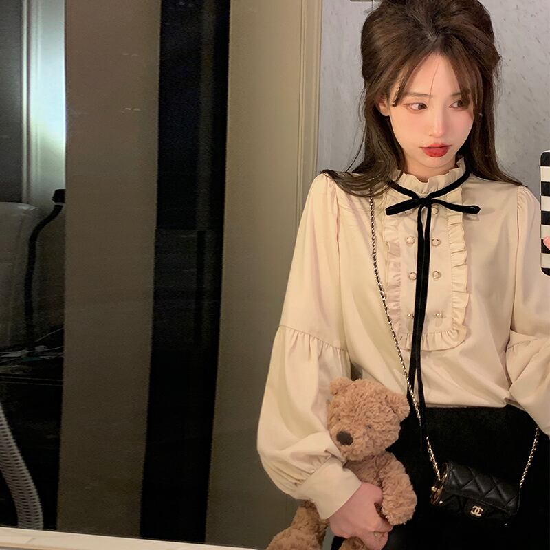 トップス シャツ ブラウス 白シャツ 白トップス 長袖 ハイネック フリル リボン かわいい 大人可愛い きれいめ 上品 おしゃれ お洒落 大人可愛い 大人女子 ラブリー キュート ガーリー 個性的 エレガント 主役級 存在感 無地 春 10代 20代 30代 レディース 女性用 女の子 普段使い 韓国 韓国系 オルチャン ファッション コーデ 楽ちん モテ 新作 定番 送料無料 トレンド 流行 インスタ映え 大きい 大きめ ビッグサイズ キュート インポート 海外 人気 大人カジュアル モテコーデ