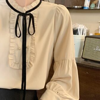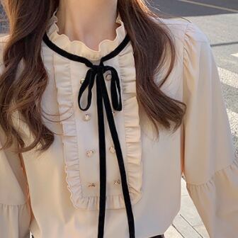 フリルとリボンが可愛らしいブラウスです。