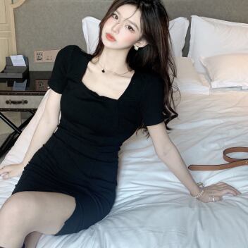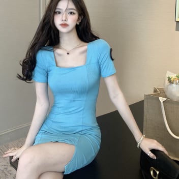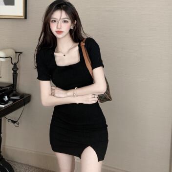 ミニワンピース ミニドレス ワンピース ミニ ミニ丈 ショート ショート丈 半袖 スクエアネック タイト 細身 スマート スリット かわいい 大人可愛い 大人 おしゃれ お洒落 大人可愛い 大人女子 キュート ガーリー 個性的 セクシー エレガント 主役級 存在感 無地 春 夏 結婚式 二次会 披露宴 10代 20代 レディース 女性用 女の子 パーティー イベント 韓国 韓国系 ファッション コーデ スタイル モテ 美脚 脚長 新作 定番 送料無料 トレンド 流行 インスタ映え インポート 海外 人気