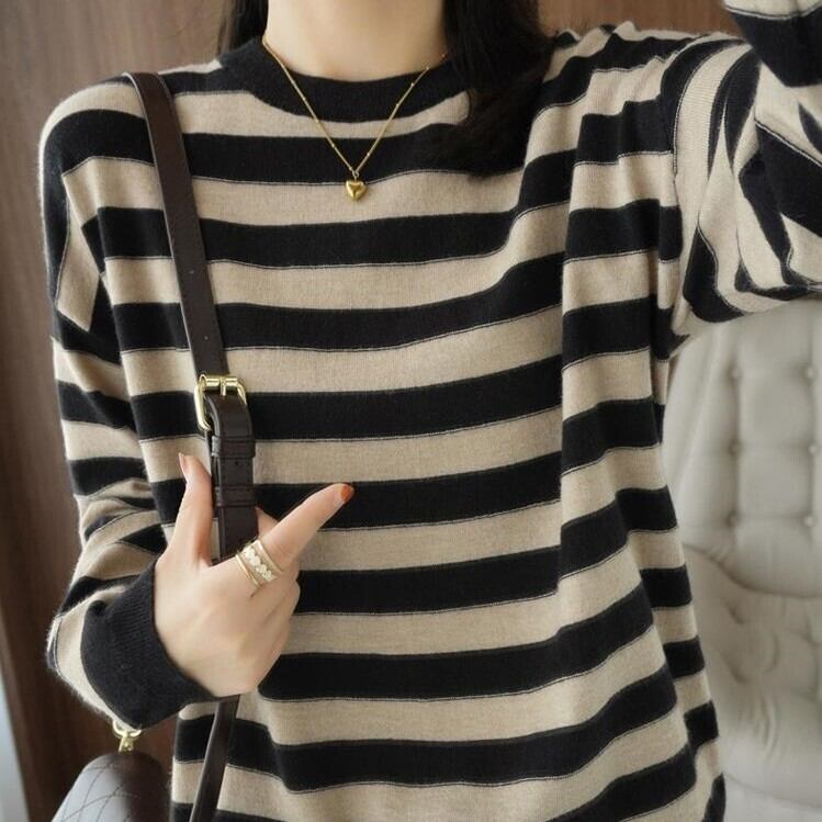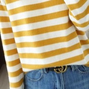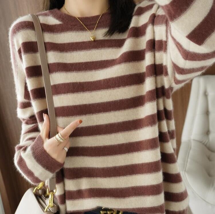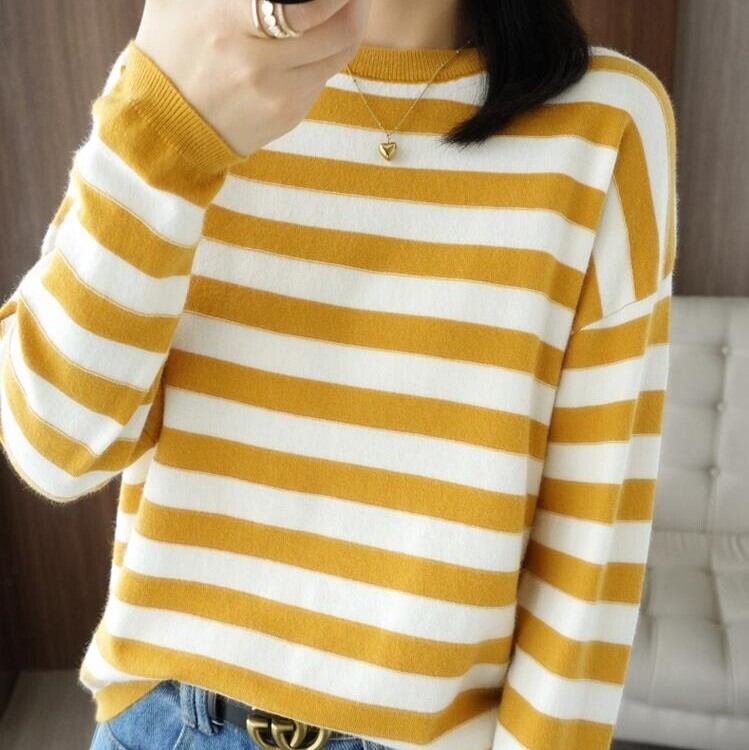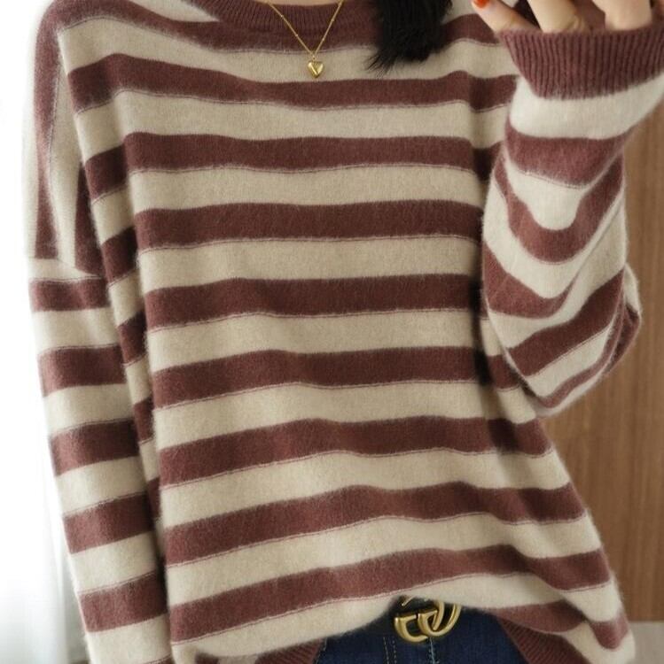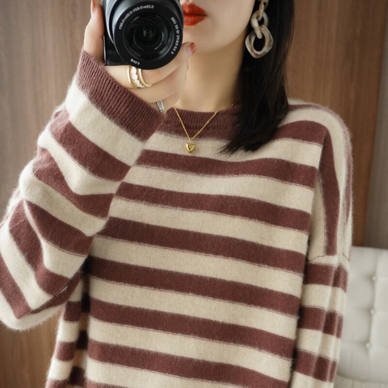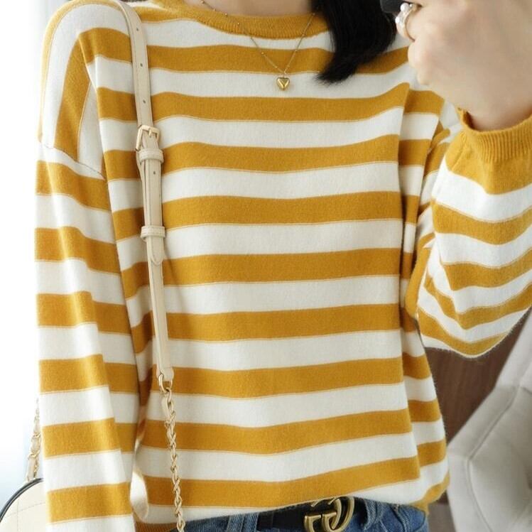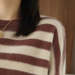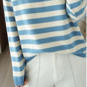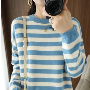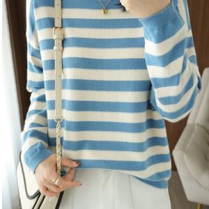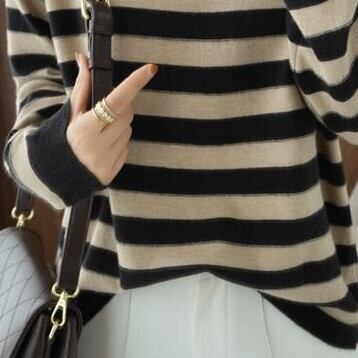 このボーダー柄セーターで、素敵な一日をお過ごしください。