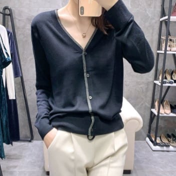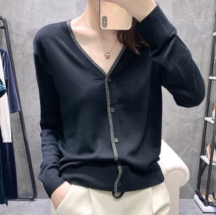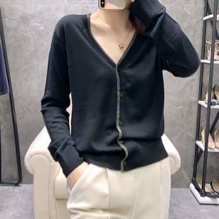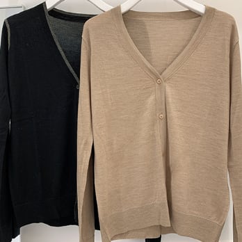 当店オリジナルのセーターカーディガンは、着心地の良さにこだわって作りました。柔らかでストレッチ性の高いニットソー素材で、肌触りが良くて着心地抜群です。春から冬まで長く使え、一着あると便利なアイテムです。
