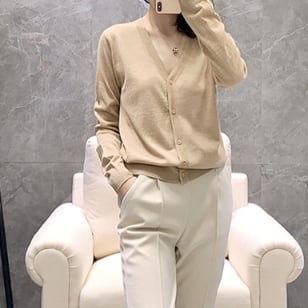 タイトめできれいめなシルエットのセーターカーディガンです。ベージュとブルーの二色展開で、どんなコーディネートにも合わせやすくて使い勝手が良いんです。上品な印象の無地デザインなので、オフィスカジュアルからちょっとしたお出かけコーデまで幅広く使えます。長めの丈とスリムなシルエットがスタイルアップ効果を発揮するので、大人女子におすすめのアイテムです。