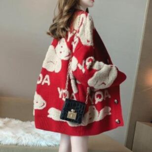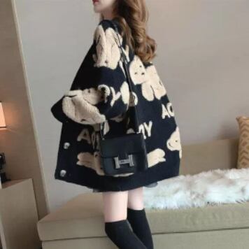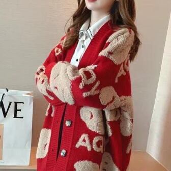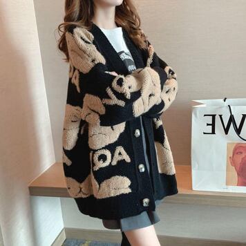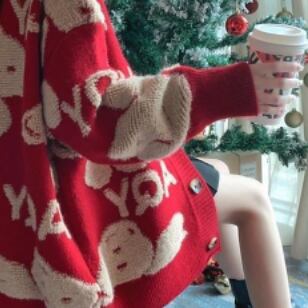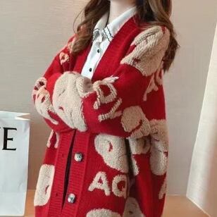 古着テイストなサイズ感と人気のくま柄デザインがとってもキュートなニットカーディガン♪