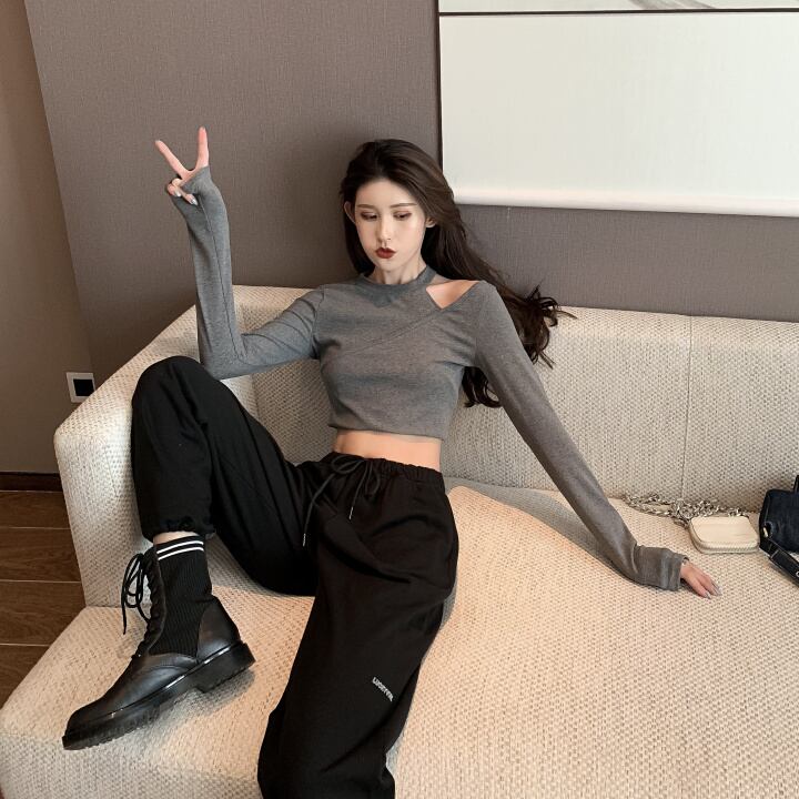 トップス カットソー ショート ショート丈 長袖 タイト 細身 スマート かわいい 大人可愛い おしゃれ お洒落 かっこいい 大人可愛い 大人女子 ラフ メンズライク スポーティー キュート ガーリー 個性的 セクシー 主役級 存在感 無地 春 10代 20代 30代 レディース 女性用 女の子 学生 デート お出かけ 女子会 お泊まり 休日 運動 ジム ヨガ 韓国 韓国系 ファッション コーデ スタイル モテ 穴あき 新作 定番 送料無料 トレンド 流行 インポート 海外 人気 大人カジュアル 女子力