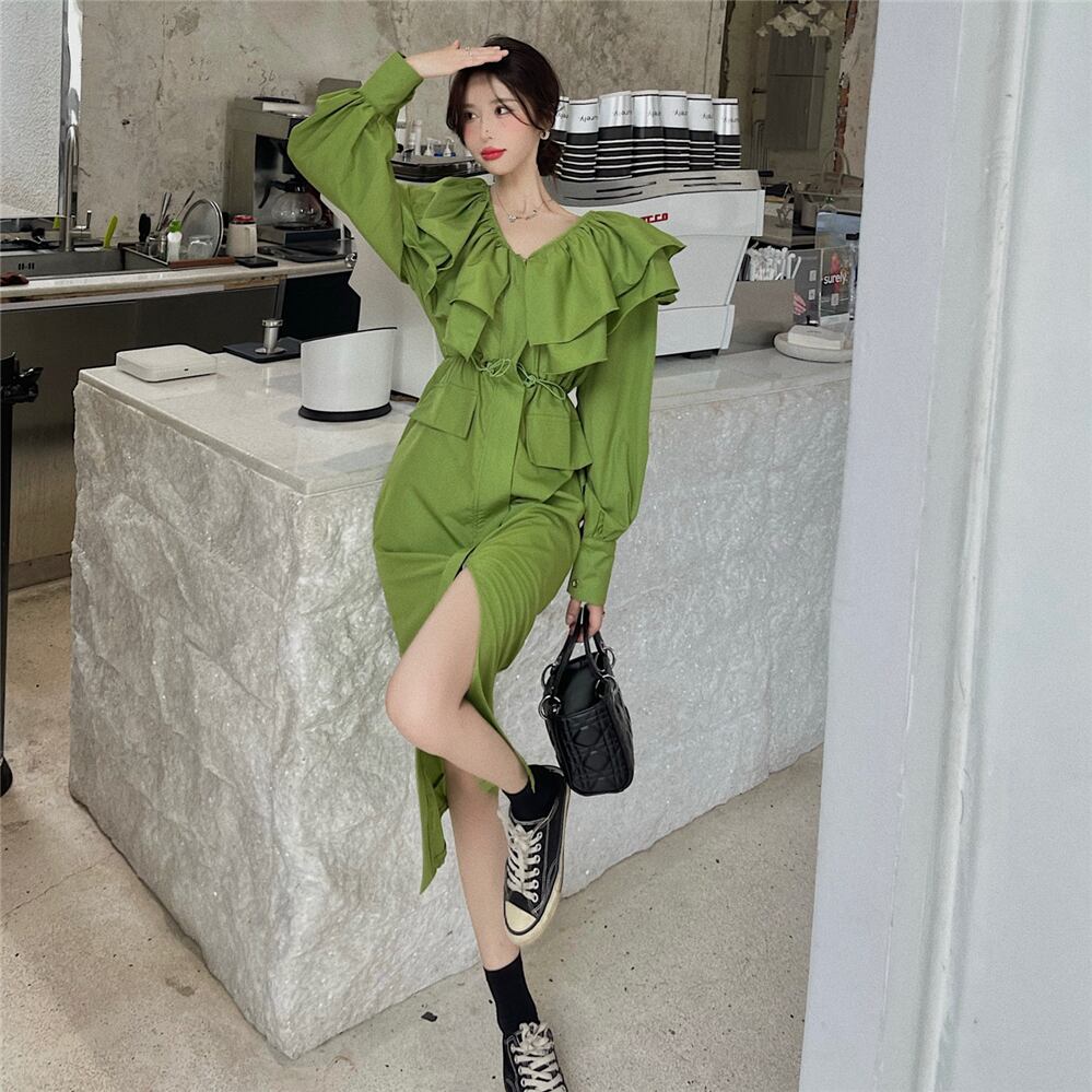 ワンピース 長袖 タイト 細身 ストレート Iライン スマート フリル かわいい 大人可愛い きれいめ 大人 上品 おしゃれ お洒落 大人可愛い 大人女子 ラブリー キュート ガーリー 個性的 セクシー エレガント 主役級 存在感 無地 春 秋 結婚式 二次会 披露宴 10代 20代 30代 40代 レディース 女性用 ママ 女の子 学生 デート お出かけ 女子会 お泊まり 休日 韓国 韓国系 オルチャン ファッション コーデ スタイル モテ 新作 定番 送料無料 トレンド 流行 インポート 海外 人気