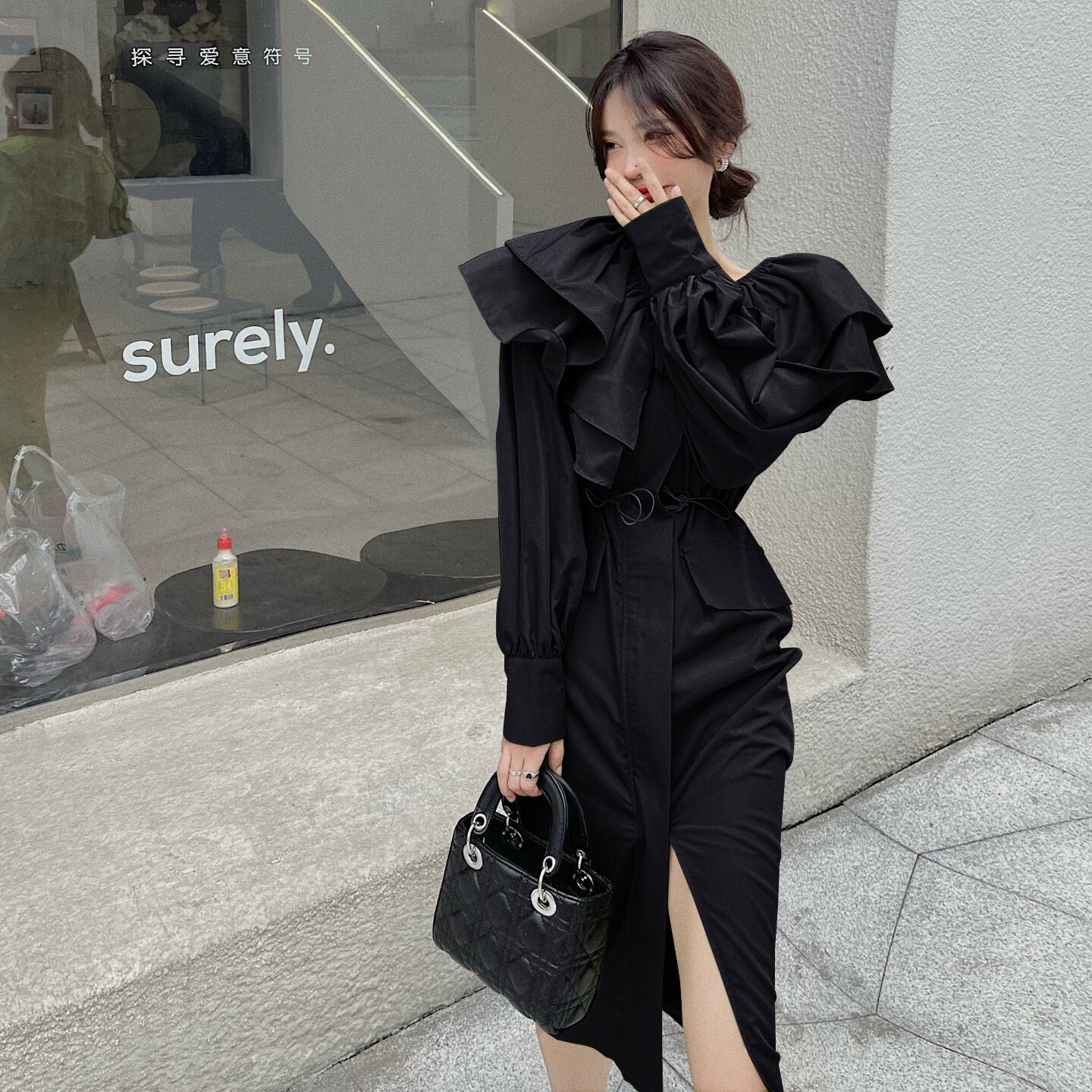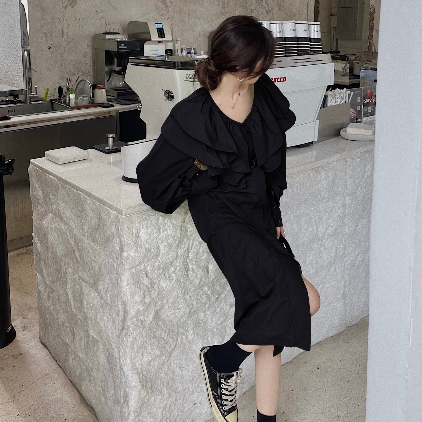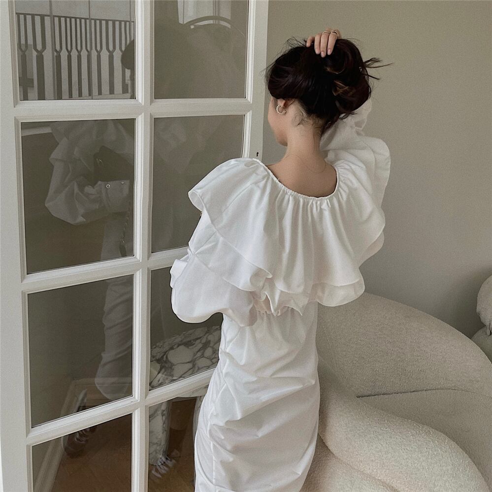 沢山のフリルがついたタイトワンピースです。