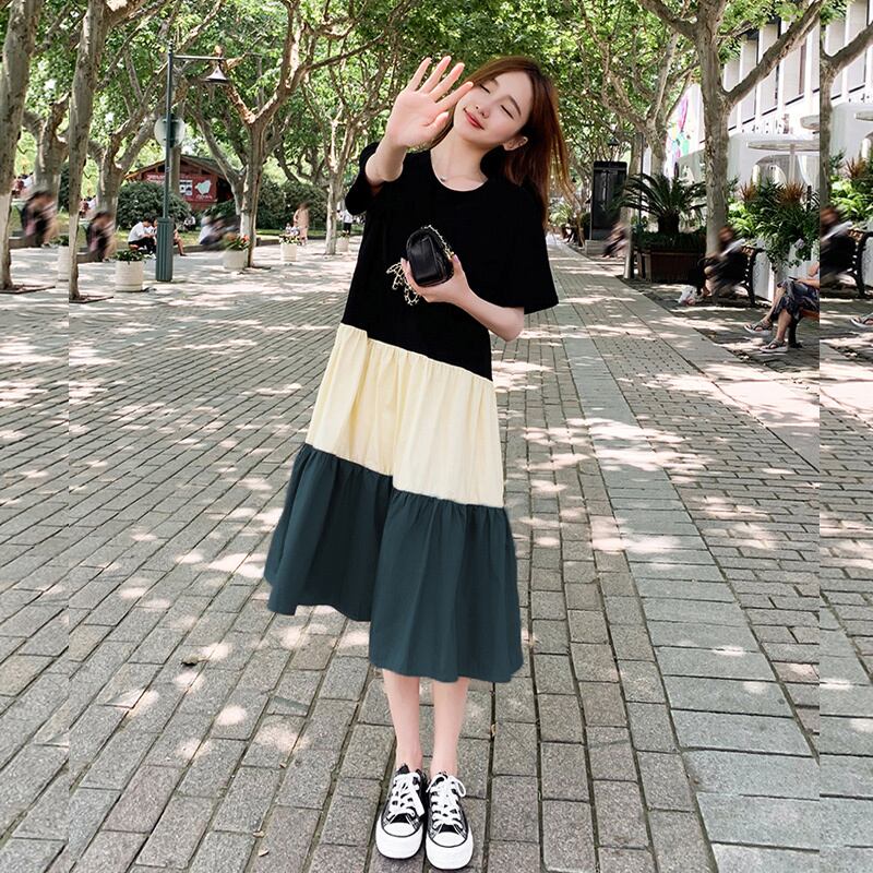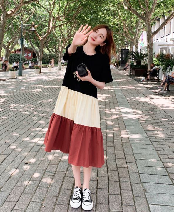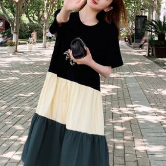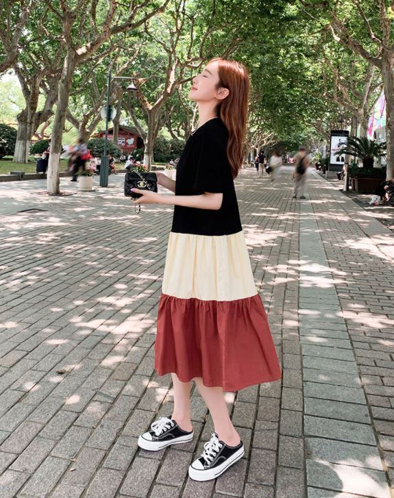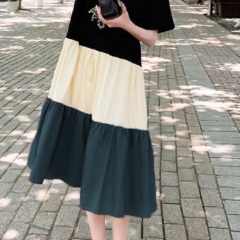 カラーマッチングワンピース コットンワンピース ミドル丈 袖あり 半袖 ラウンドネック Aライン ドッキング フリル 切り替えデザイン 綿 かわいい 大人可愛い きれいめ カジュアル おしゃれ かっこいい 大人女子 こなれ感 ラフ ラブリー キュート 個性的 モダン 主役級 存在感 抜け感 無地 夏 10代 20代 30代 レディース 女性用 学生 通学 デート お出かけ イベント リゾート 旅行 着回し 普段使い ファッション コーデ スタイル 体系カバー 新作 トレンドインスタ映え 海外 好感度