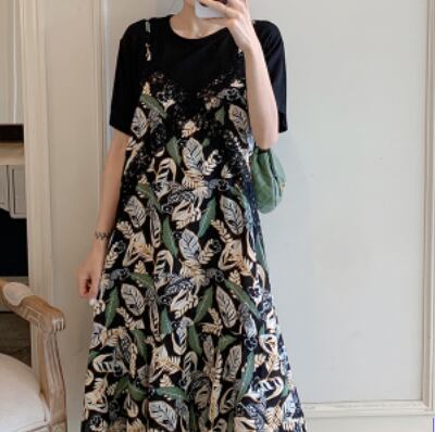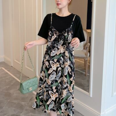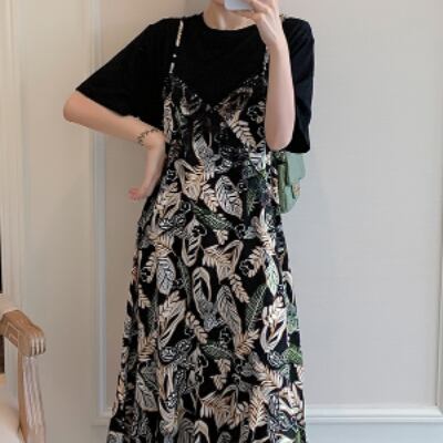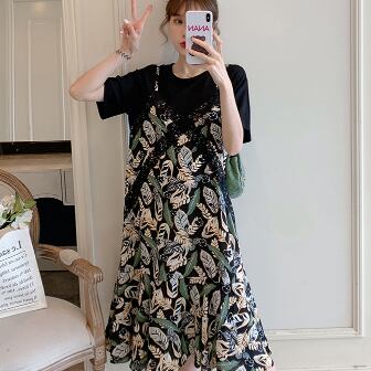 ドッキングワンピース フレアワンピース ミドル丈 袖あり 半袖 ラウンドネック ドッキング フィッシュテール フリル 切り替えデザイン サスペンダー 綿 ポリエステル 薄手 かわいい 大人可愛い きれいめ カジュアル 大人 おしゃれ アジアン エスニック エキゾチック 大人女子 こなれ感 ラフ ラブリー キュート ルーズ 個性的 抜け感 花柄 ボタニカル 夏 レディース 女性用 ママ 学生 通学 デート お出かけ 女子会 休日 リゾート 旅行 ガーデン 着回し 普段使い ファッション コーデ スタイル