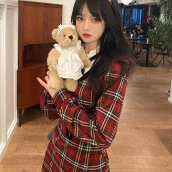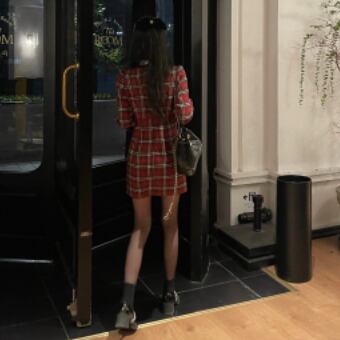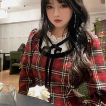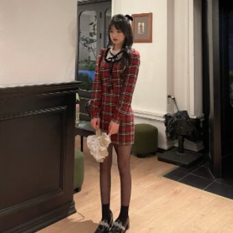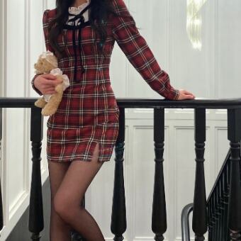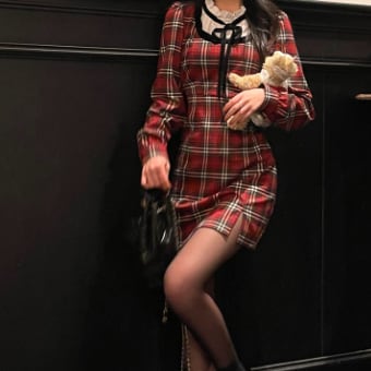首元に黒リボンをあしらった英国風チェック柄の可愛らしさだけでなくほどよく女っぽさもある、大人ガーリーな雰囲気が魅力です♪