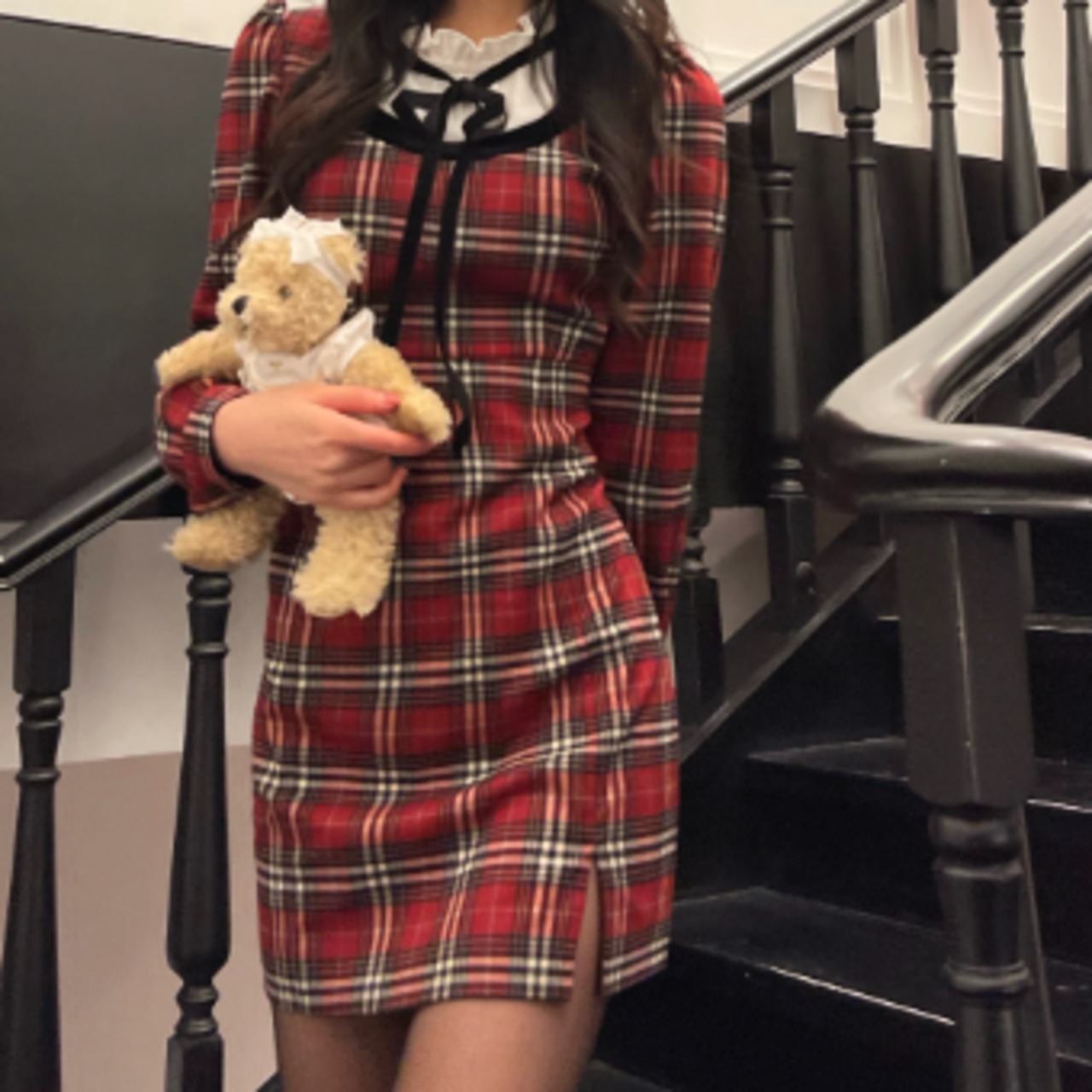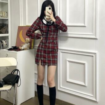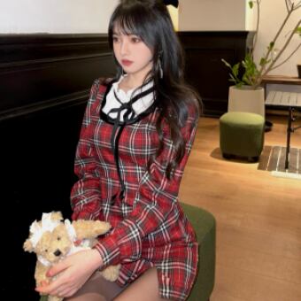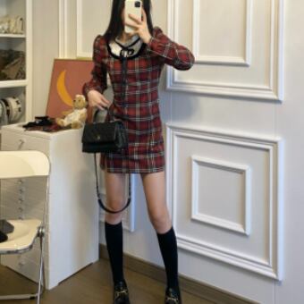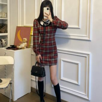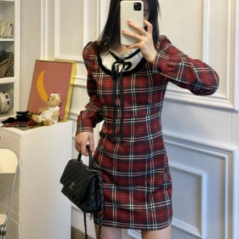 フリルネック レイヤード風 ドッキングデザイン マイクロミニ丈 ワンピース ミニ丈 膝上 長袖 襟付き スタンドカラー スリム タイト 細身 リボン スリット ファスナー ポケット 異素材MIX かわいい 大人可愛い シンプル カジュアル 上品 おしゃれ お洒落 キュート ガーリー フェミニン チェック柄 格子柄 春 秋 冬 レディース の子 学生 通学 デート お出かけ 女子会 休日 普段使い 韓国系 オルチャン ファッション コーデ スタイル XS S M L 小さいサイズ 赤 レッド