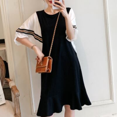 ドッキングワンピース Tシャツ ミドル丈 袖あり 半袖 ドルマンスリーブ ラウンドネック ワイド 切り替えデザイン ドッキング フィッシュテール 綿 薄手 かわいい 大人可愛い カジュアル おしゃれ 大人女子 こなれ感 スポーティー ラブリー キュート ルーズ 個性的 抜け感 夏 10代 20代 レディース 女性用 OL 学生 デート お出かけ 公園デビュー 女子会 イベント リゾート 旅行 普段使い ファッション コーデ スタイル モテ 流行 インスタ映え 好感度 イメージアップ 注目 新入荷