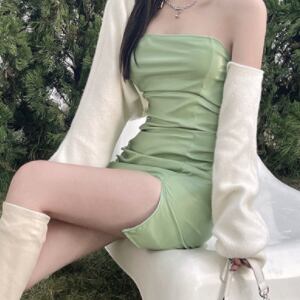 チューブトップワンピース チューブトップドレス ワンピース ドレス ミニ ミニ丈 袖あり スリム タイト 細身 Iライン スマート スリット サイドスリット かわいい 大人可愛い きれいめ 大人 おしゃれ お洒落 レトロ 大人可愛い 大人女子 キュート ガーリー セクシー エレガント 主役級 存在感 無地 春 夏 結婚式 二次会 披露宴 10代 20代 30代 レディース 女性用 女の子 パーティー イベント 韓国 韓国系 オルチャン ファッション コーデ モテ 新作 定番 送料無料 トレンド 流行 海外