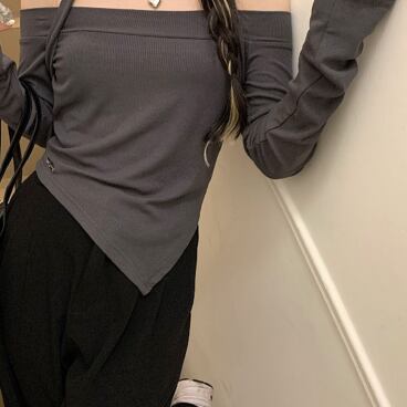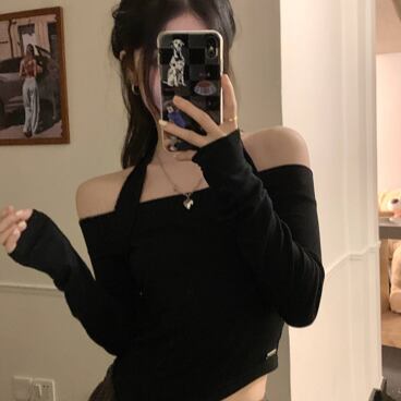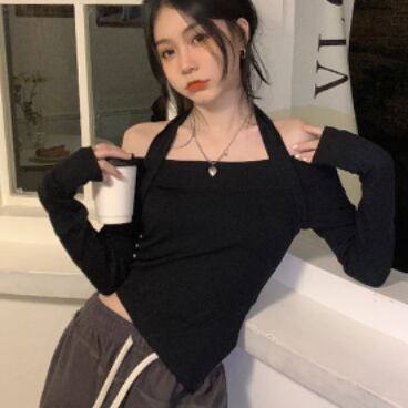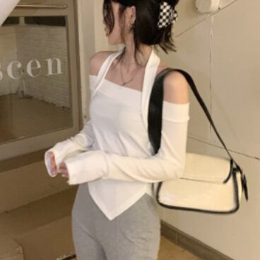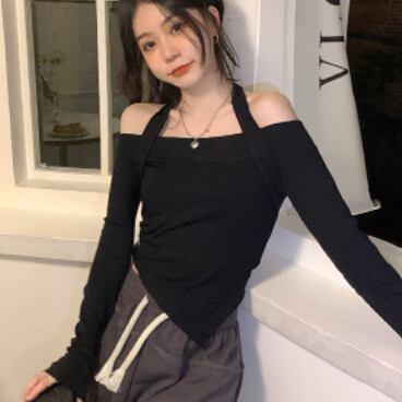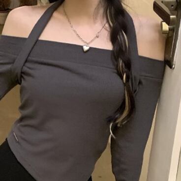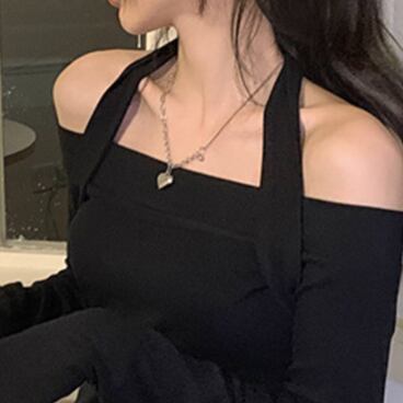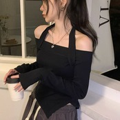 ホルターシャツ トップス Tシャツ シャツ ミドル丈 袖あり 長袖 オフショルダー ホルターネック スリム タイト 細身 薄手 かわいい 大人可愛い きれいめ 大人 上品 おしゃれ かっこいい 大人女子 こなれ感 個性的 クール モード系 セクシー エレガント モダン 主役級 存在感 無地 春 秋 10代 20代 30代 OL 学生 デート お出かけ 女子会 休日 パーティー イベント リゾート 旅行 ホテル ガーデン レストラン 着回し 普段使い ファッション コーデ スタイル モテ トレンド 流行