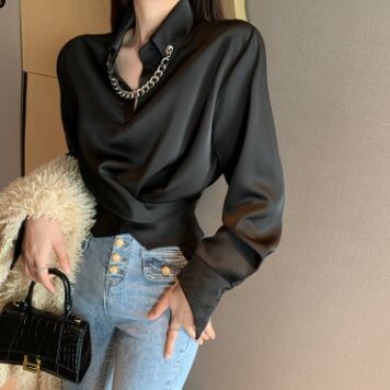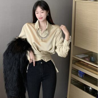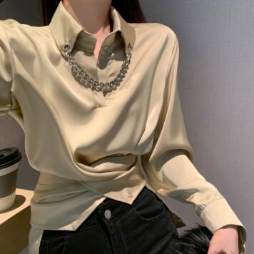 サテンシャツ トップス シャツ 長袖 襟付き かわいい 大人可愛い きれいめ 大人 上品 おしゃれ お洒落 かっこいい 大人可愛い 大人女子 キュート ガーリー 個性的 セクシー エレガント 主役級 存在感 フォーマル とろみ感 無地 春 夏 秋 冬 入学式 入園式 卒業式 卒園式 10代 20代 30代 40代 50代 レディース 女性用 OL デート お出かけ 女子会 お泊まり 休日 パーティー イベント 韓国 韓国系 ファッション コーデ スタイル モテ 新作 定番 送料無料 インポート 海外 人気