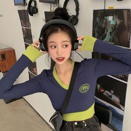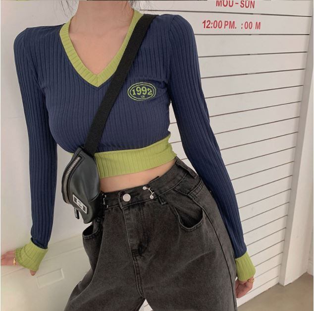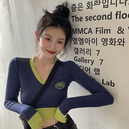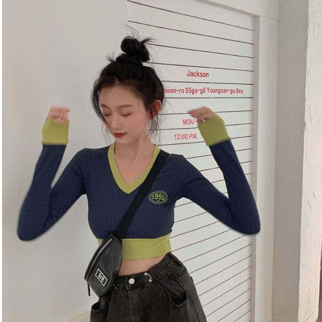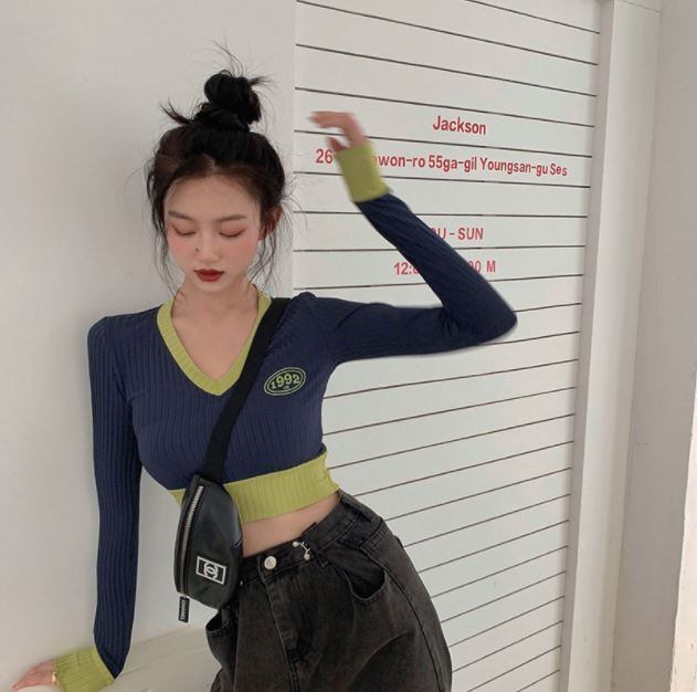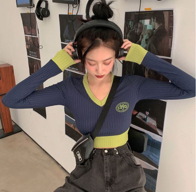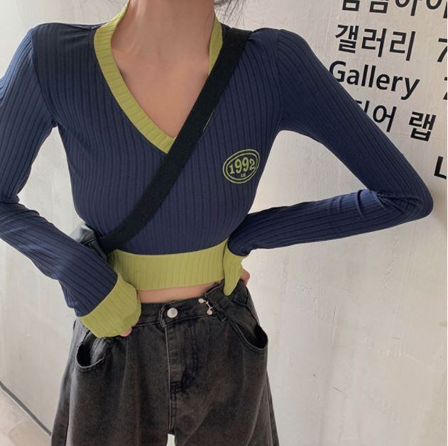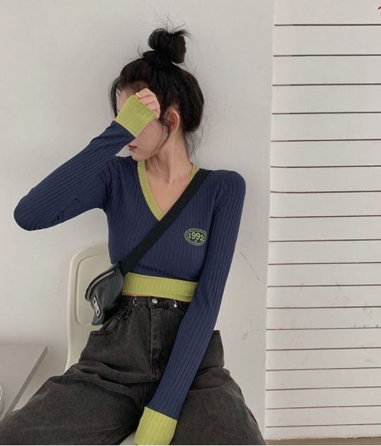 コントラストカラーセーター トップス セーター ショート 袖あり 長袖 Vネック タイト 細身 ハイウエスト リブ ニット かわいい 大人可愛い カジュアル 大人 おしゃれ かっこいい 大人女子 こなれ感 ラフ マニッシュ ボーイッシュ ラブリー キュート 個性的 クール 無地 春 秋 10代 20代 レディース 女性用 OL 学生 通学 デート お出かけ 女子会 休日 ジム イベント 着回し ファッション コーデ スタイル モテ 脚長 新作 トレンド 流行 インスタ映え 好感度 イメージアップ
